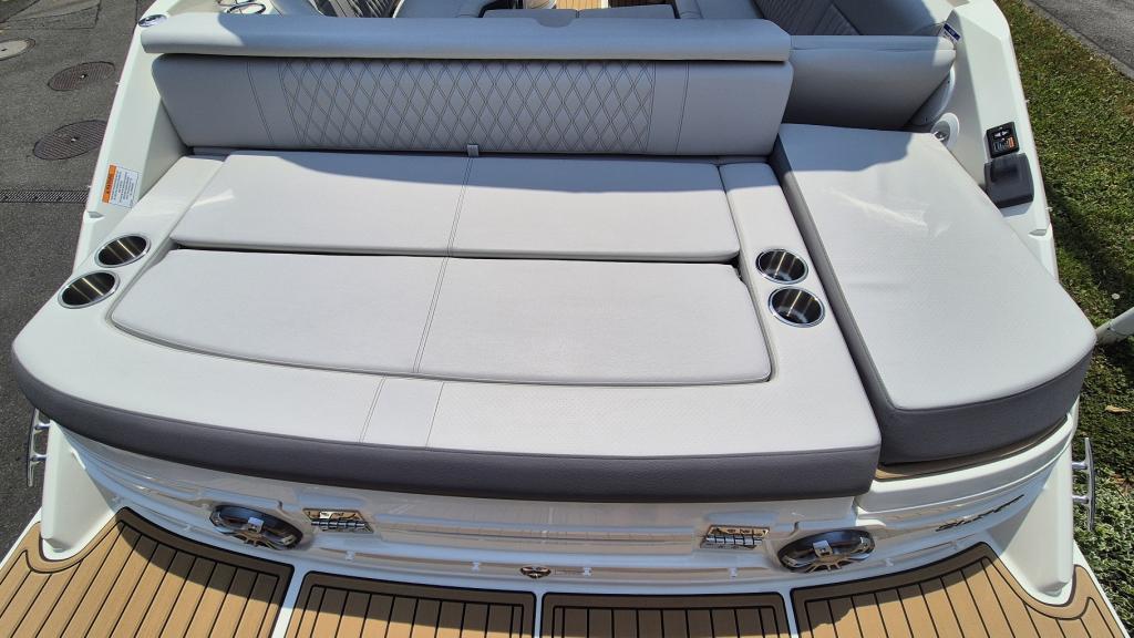 NAVIONICS Seekarte, Stereoanlage Premium FUSION, Mit Subwoofer, zusätzlich Lautsprecher, Fernbedienung, Fusion DAB+ Modul inkl. Aktiver Antenne, Batteriewahlschalter mit Zusatzbatterie, Luftpumpe für Wasserspielzeug 12V, Batterieladegerät an Board – 220V/50 bis 12V, Inkl. Gerätekabel 10M, Z-Hebeschalter am Heck, Yachtoilette mit Spühlung, Tank, Absaugsystem, Dynamic Running Surface, Towerlicht LED 360° montiert, Unterwasserplattform manuell absenkbar, Badeplattform mit SeaDek, Ankerwinde 12V, Kette, Anker Chromstahl, Bugstrahler, Schale 3-Ton – Three Zone Gelcoat
