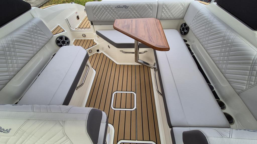 Cockpitpolsterung: STONE, Bodenbelag: BROWN, Anker Bundle: Ankerwinde 12V elektrisch, Tau und Kette, Anker Chromstahl, Comfort Bundle: Füllkissen Bug, Teak Tisch für Bug, Teak Tisch Cockpit, Entertainment Bundle: Induktive Ladestation, Premium FUSION Stereo /RA770 AM, FM, Bluetooth, Verstärker 2400W, DSP, NRX300 Remote, Stereo, 6x Signature Series, Lautsprecher 7 Zoll, Signature Subwoofer 10 Zoll, Wi-Fi-Audiostreaming AirPlay 2), Essential Bundle: Bug und Cockpitdecke, Fender Clips, Flaggenmast mit Sockel, SeaDek /geklebt) auf Badeplattform und Bordkonsole, Beleuchtungs-Paket: Cockpitbeleuchtung LED (ARGB) Farbwechsel, Beleuchtung für Bug und Cockpit, Beleuchtung für Getränkehalter, Unterwasserbeleuchtung (2x), Anlegescheinwerfer, Wassersystem Paket: Bugdusche und Heckdusche mit ausziehbarer Sprühvorrichtung, Wasserdrucksystem mit 12V-Pumpe und Filterung, Next Wave: Surf System für ein perfektes Wakesurf-Erlebnis mit Ballasttanks, Surftabs, elektrischen klappbarem Tower m. verschiedenen Zugpunkten & intuitiver, Oberfläche, Badeleiter im Bug, Cockpitbodenbelag SeaDek geklebt, Cockpitkühlfach 12V, Luftpumpe für Wasserspielzeug, Dual Digital Dash Simrad NSX 9’’ , Seekarte C-MAP, Fusion DAB+ Modul mit Antenne, Batteriewahlschalter mit Zusatzbatterie, Batterieladegerät an Bord – 220V/50 bis 12V , Elektrische Trimmklappen mit Anzeige, Yachttoilette mit elektrischer Spülung, Tank und Absaugsystem, Unterwasserplattform manuell absenkbar, Wassersport Tower Elektr. Schwarz m/Bimini, Tower Akzentpanele (Fiberglas) farblich abgestimmt auf Hull Side Farbe, Towerlicht 360° montiert, Wakebord Racks Clamps Force inkl. Halterung, Elite Mirror System (PTM Watersports), Tower Lautsprecher (2x Schwarz), Bugstrahler, Cockpit-Heizung mit Surfinity-Decke, Upgrade der Innenspiegel Polsterkissen für die Toilettenkabine, Z-Hebeschalter am Heck, Autom. Feuerlöschsystem (Motorraum) und Handfeuerlöscher 2Kg, es sind 12 Personen zugelassen, zum surfen/Waken 8 Personen.