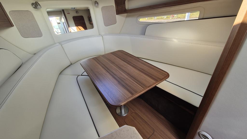Mercury Active Trim, Cockpitpolsterung Vinyl, Farbe: Stone Bodenbelag Teak; Captain’s Package: Bimini Sonnendach, Cockpitdecke, Scheibenwischer STB, Heckdusche, Bugdusche, Dusche in Toilette, Anlegescheinwerfer, Flaggenmast mit Sockel, Fenderclips; Bimini Camperverdeckpaket mit Camper-Top mit Gestänge; Front-, Seite- & Heckteil; Cockpitdecke; Fiberglass Sportspoiler mit Bimini Dach; Liegematte Bugdeck mit Handlauf; Cockpittisch Teak rechteckig & klappbar mit Liegepolster; Cockpitboden mit Teakholz; Heizung Webasto Benzin - Kabine, Cockpit; Cockpitkühlfach 12V, Kocher in Kabine (220V Elektro); Kabinen Galley mit Spüle und Kühlschrank; Anlegescheinwerfer; Stereoanlage Premium Fusion mit Subwoofer (Kabine & Cockpit); Dual Digital Dash Simrad 9"; NAVIONICS Seekarte (Alpine, Lakes & Rivers); Trimmklappen hydraulisch; Heckdusche mit Warm-/Kaltwasser; Yachttoilette mit elektrischer Spülung; Tank und Absaugsystem; LED Rundumlicht/Navigationslicht 360° festmontiert (Höhe 3cm, nur für Tower); Unterwasserplattform manuell absenkbar; Badeplattform mit Teakholz; Ankerwinde 12V; Kette; Anker Chromstahl; Bugstrahler; Wasserlinie geklebt - Farbe RALLY RED; Hafendecke aus leichtem Stamoid über ganzes Boot einwandfrei; Obligatorisches Bootsinventar enthalten - ausser Schwimmwesten; Unterwasserbeleuchtung 2x LED blau; Lautsprecherbeleuchtung im Cockpit LED blau.