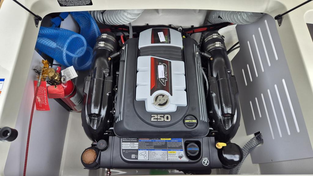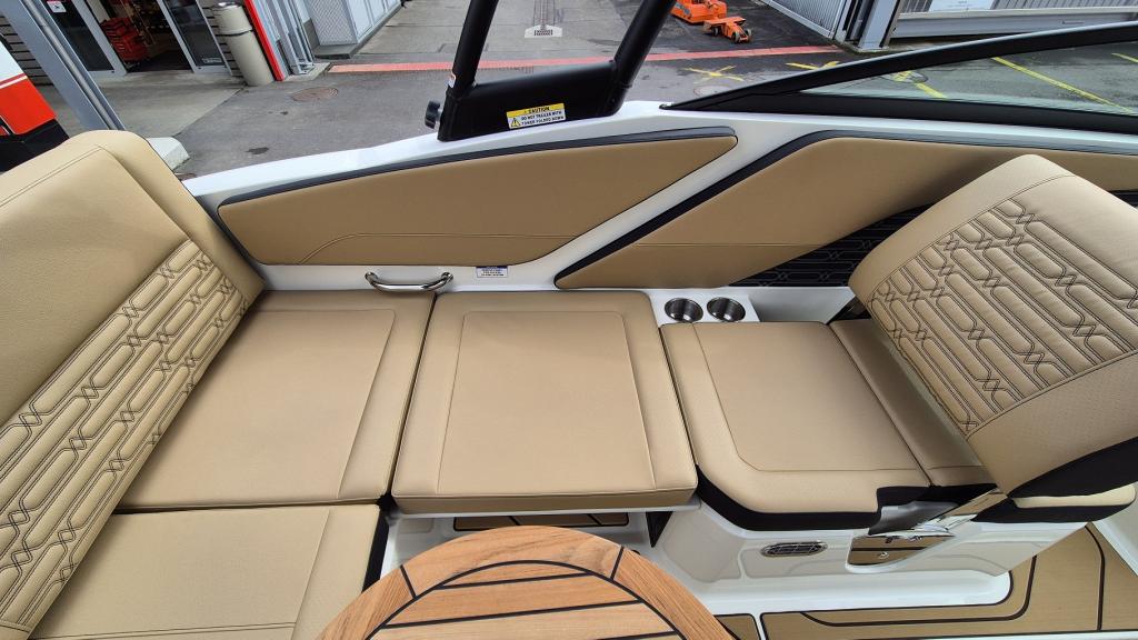 Bimini Sonnendach, Bug- & Cockpitdecke, Füllkissen Bug, Rückenpolster Durchgang, Füllkissen Seitendurchgang Heck, Cockpittisch Teak rund, Fenderclips; Wakeboard Tower schwarz, BiminiTop (ohne Rack & Rückspiegel), Gebogene / runde Windschutzscheibe, Cockpitkühlschrank 12V, Cockpitbodenbelag SeaDek geklebt, Cockpitbeleuchtung LED (blau), Selbstlenzendes Cockpit, Stereoanlage FUSION®, Batteriewahlschalter mit Zusatzbatterie, Echolot und Wassertemparaturanzeige, Digital Dash mit SmartCraft Connect NSX 7’’, Seekarte C-Map, Luftpumpe 12V für Wassersportgeräte, Heckdusche, Towerlicht LED 360° montiert, Unterwasserplattform manuell absenkbar, Badeplattformbelag mit SeaDek, Autom. Feuerlöschsystem im Motorraum, Handfeuerlöscher 2kg, Wasserlinie Gelcoat – Boot Stripe